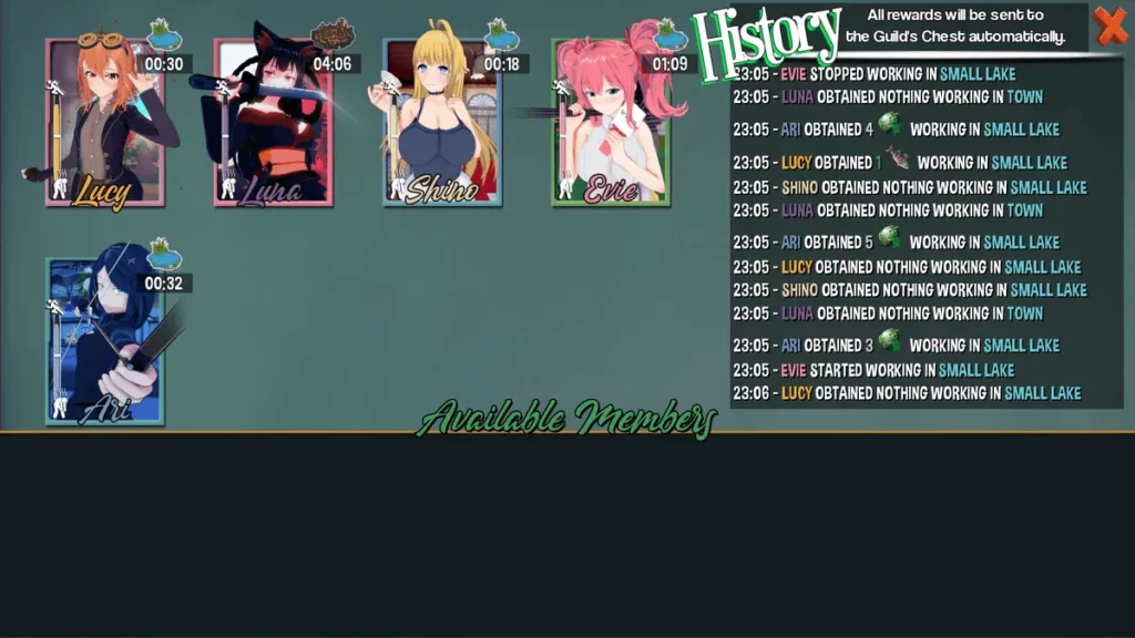 The Hero’s Harem Guild gameplay loop is designed to be relaxed. While there is a cycle of talk-manage-quest-repeat, it never feels like a chore because the character interactions are so enjoyable. The quest system runs in the background, so you’re rarely just waiting. You’re always progressing something, whether it’s a relationship, a guild upgrade, or the main story.