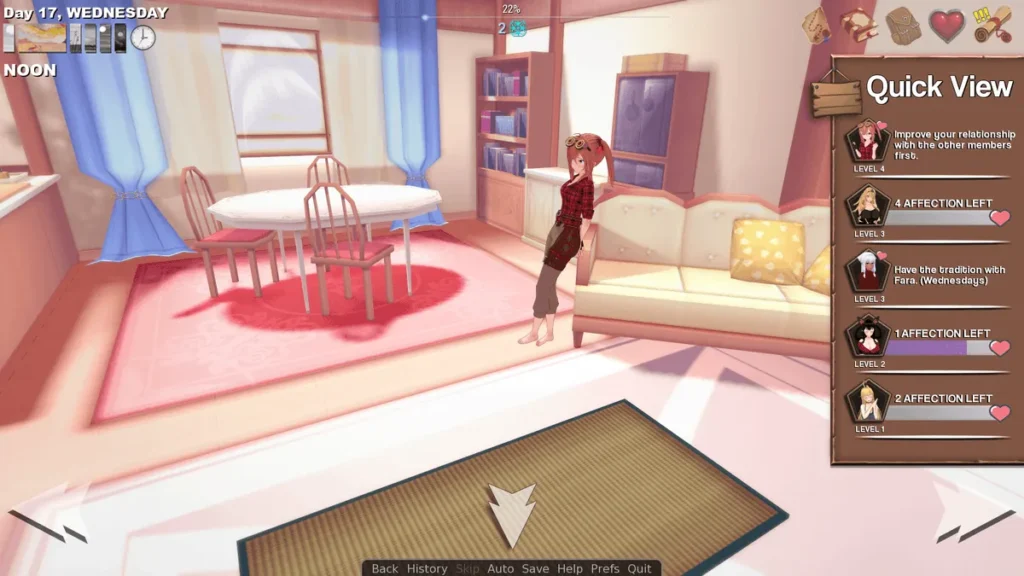 | Daily Conversation | +Relationship Points, New Dialogue | Unlocks character backstory and personal quests. |